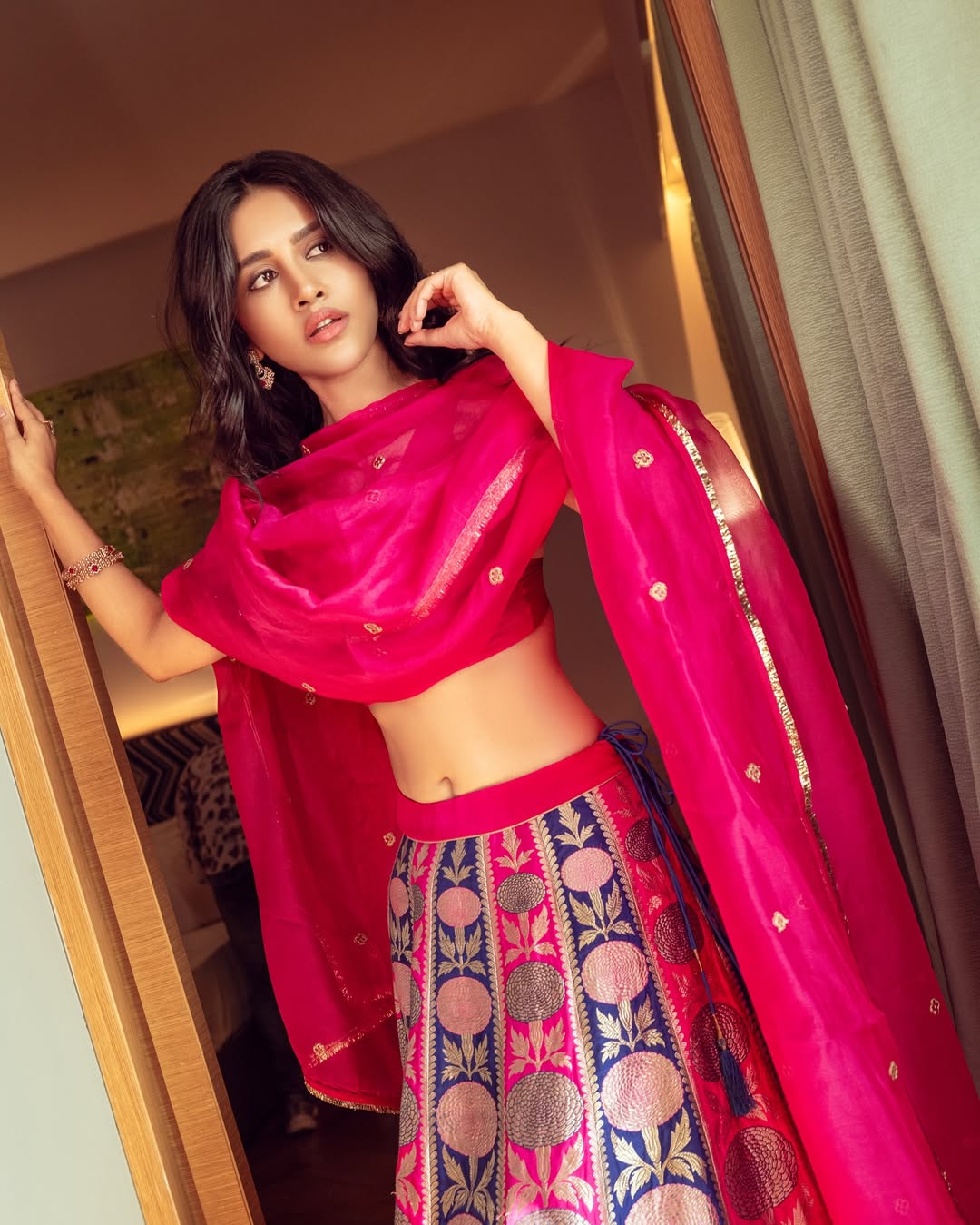 Nabha Natesh has taken the internet by storm with her breathtaking lehenga look. Her stunning photos have gone viral, leaving fans in awe of her elegance and charm. Don’t miss out on this sensational photo collection!