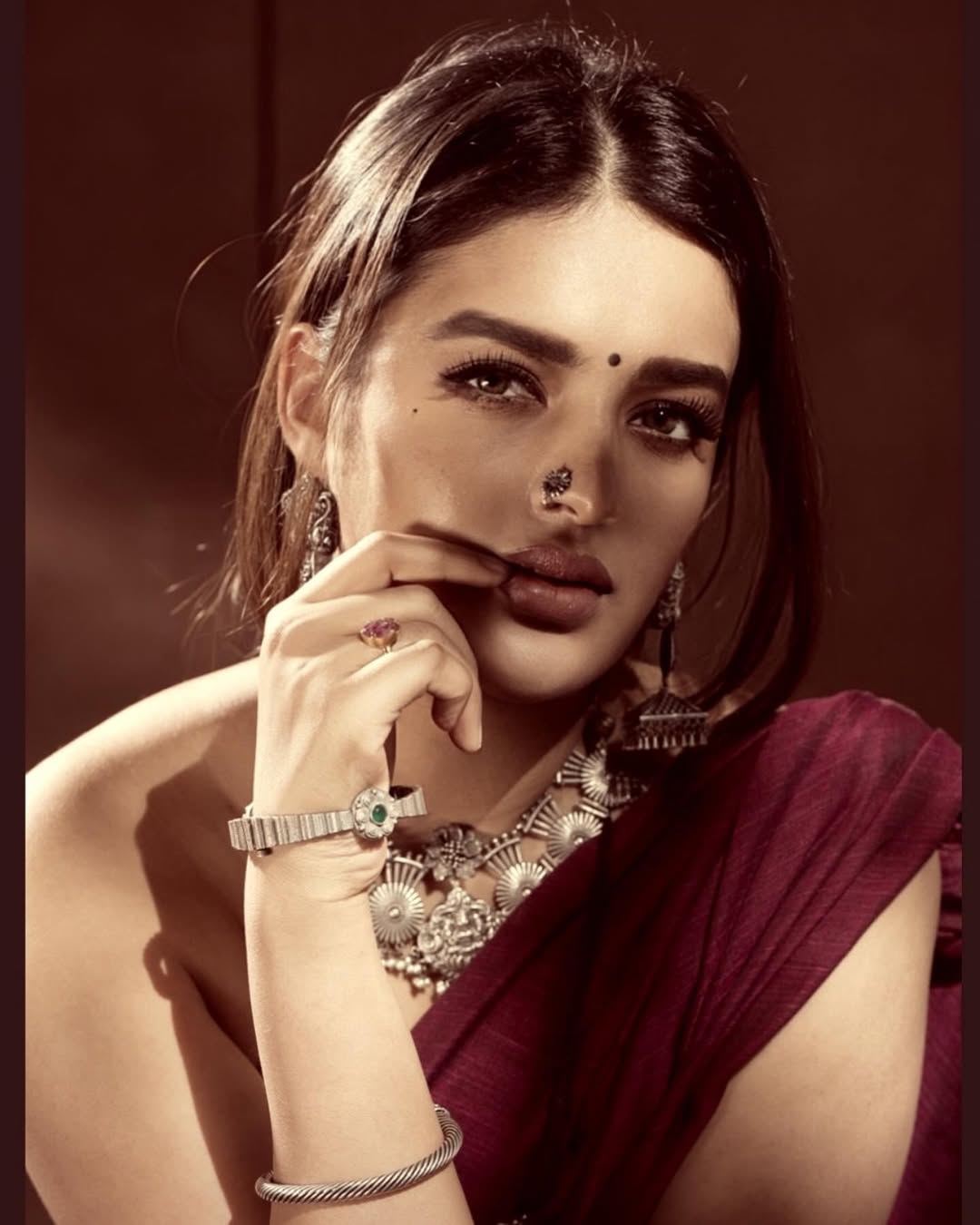 Nidhhi Agerwal is a rising Indian actress and model who works predominantly in Telugu, Tamil, and Hindi films. A former beauty pageant contestant and trained ballet dancer, she made her acting debut in 2017 with the Bollywood film Munna Michael opposite Tiger Shroff. Known for her grace, fashion sense, and screen presence, Nidhhi has since built a strong fan following with her roles in films like iSmart Shankar, Eeswaran, and Kalaga Thalaivan. Her social media presence continues to captivate fans with glimpses of her glamorous life and style.